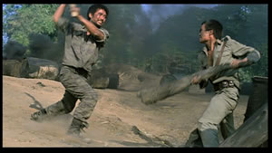 Heroes Shed No Tears - John Woo had an erratic start to his directing career. He started under the wings of Chang Cheh at Shaw Brothers as assistant director on films including Blood Brothers, Water Margin and Boxer from Shantung. He then directed a number of titles which remain of little interest to anything but the collector with the exception of Hand of Death and Last Hurrah for Chivalry. Hand of Death was a half decent kung fu flick that featured four of the Seven Fortunes (Jackie, Sammo, Biao and Wah) and Golden Harvest's Last Hurrah for Chivalry was a top notch swordplay title starring the Venom Wei Pei and Shaw Brothers veteran Lee Hoi San. Heroes Shed No Tears was originally shelved by his studio after completion (under the working title of Sunset Warriors). It was only released after the runaway success of A Better Tomorrow in 1986 when they tried to cash-in on his name - very similar to Lo Wei releasing Jackie Chan's back catalogue after the success of Snake in the Eagle's Shadow and Drunken Master in the late seventies. The film features kung fu veteran Eddy Ko and Golden Harvest legend Lam Ching-Ying. The action director was none other than Chin Yuet Sang (had worked previously with Eddy Ko on Hitman in the Hand of the Buddha). Plot: Heroes Shed No Tears shares some structural similarities to the Lone Wolf and Cub series, the hugely popular Japanese series. It involves a relationship between a 'soldier of fortune' and his son as they try to successfully navigate the treacherous 'Golden Triangle' with a kidnapped crime lord. As the film progresses, so does the body count. Chan Chung (Eddy Ko) and his team are pursued by soldiers, mercenaries and even some tribal warriors - all in a day's work! Film: With this being a pre-fame John Woo movie, there are some glimpses of his trademark style rather than it dominating proceedings. There is the fascination with pistols, including very shiny Lugers and plenty of gun play. Like his later wartime film Bullet in the Head, there are also numerous explosions and pyrotechnics to liven up the action. Lam Ching-Ying's clichéd bad guy also shares the familiar trademark of being a crippled bad guy after being shot in the eye by Eddy Ko (see most John Woo bad guys). However, Heroes contains some surprises as well. There is a drugs and sex scene involving a troupe of Asian beauties and a gwailo that hits the otherwise breezy tempo like a brick wall. The action is a touch more violent than later works; there is a brutal impaling and some mutilation and torture at the end which provides edginess normally associated with Ringo Lam. Woo also includes an ineffectual comedy sequence at a jungle gambling den which makes you grateful he soon distanced himself from such folly! The other question mark is over the action, which is a constant throughout but lacks any real class. Lam Ching-Ying fans will be disappointed to see him labour in this role only a few years after delivering such classics as Prodigal Son and Encounters of a Spooky Kind. Eddy Ko is solid as the lead, but as fans of the old school will know, he struggles to go beyond three facial expressions (vengeful, shocked and serene for those who are interested). Disc: Muchos credit to Hong Kong Legends for delivering one of their most stylish packages in recent memory. The disc cover is bold, eye-catching and innovative for the label - more of the same please. (We can only dream of a day when Hong Kong Legends release A Better Tomorrow, after Optimum's rather poor recent effort) The disc content is less remarkable. It still contains a decent 1.85:1 remastered anamorphic print with Cantonese and English DD5.1 audio options. There is a reused John Woo interview (22 mins) and a Lam Ching-Ying tribute essay, plus some trailers. Ok package, but not anything particularly exciting and no audio commentary since Bey Logan's departure. Overall: An interesting rather than exhilarating journey. This is not classic Woo, it is an early indication of a talent that was soon to blossom. After watching Heroes Shed No Tears it is understandable why studio bosses got cold feet over the production, it is unevenly paced and fails to get the best out of the film leads. As with most early John Woo productions, you are not left completely short-changed. But, you may be wishing that you'd gone for a later film with plenty more doves with some cheesy sax / keyboard playing over blazing twin revolvers! Paul |