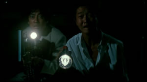 Film: Whilst more conventional than many of Tsukamoto's features, Hiruko is still pretty crazy for a low budget horror flick and this works in its favour as it tends toward schlock rather than shock, with creatures bearing a resemblance to Carpenter's "Thing" and plentiful decapitations and gore flying about. The cheap effects (model work and stop-motion - no CGI in them days) help rather than harm the film especially as the cast play it relatively straight and are 'normal' people as opposed to the buff model types which always happen to be the ones that get hunted down in the Hollywood schlockers churned out in the past couple of decades. Reijiro in particular is a great character, genuinely suffering due to the skeletons in his closet and terrified of the goblin fiends, he nevertheless sets himself the task of constructing loony homemade goblin detectors and weapons to try and deal with them. Although the plot is the usual "the gateway to hell is under the school !" guff, there are moments that show Tsukamoto's edge, one being the sequences where the goblin tries to control people, showing them their idyllic setting and trying to use the trusted loved ones in it to get them to slit their own throats, all in a dreamy, summery haze in stark contrast to the dark and deserted school; or the camera technique Tsukamoto used in Tetsuo - attaching it to the actor as they speed along, here being used on victims dragged to their doom by the goblin. This invention helps to set Hiruko a notch or so above your average B-movie gore fest, and reflects the glee with which the director flings his bizarre creatures at the audience.