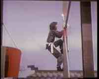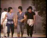 As the plot suggests, the fighting is sparse until the last 30 minutes, where the action explodes and Chang Cheh shows his ability to build a powerful story into a blazing crescendo. Before this, much of the action involves Kuo Chi showing off his acrobatics and both Kuo Chi and Lo Meng having flashbacks of their earlier training. Kuo Chi's training involved being taught to "use everything as a weapon", and we are then shown the rice bowl and chopsticks fight (now where have I seen that before?). Lo Meng's training had him using a trident spear to twist metal pipes, again a highly versatile discipline! What does stand out is that the action is considerably less gory than many other Chang Cheh flicks, with the only 'butchering' occurring when Chu Tsai and the others have to confront his fellow workers and students who betrayed him. Once the real action begins it is five on five, with the majority of the action weapons work. General Cheung (Lu Feng) has the Kwan-do and looks very cool, he is accompanied by the high kicking Tiger boy (Tam Jun Tao), Leopard boy (Lau Shi Kwong) using a ring and a warrior with a sword and shield (Yu Tai Ping) and one with a hammer / mace (Yang Shun). The 'good guys' have a trident (Ah Chien), double hook sword and spear (Han Chi), staff (Hung Sze Kwan), and the chair (Ying Cha-Po). However, they do rotate their weapons during the action and Chu Tsai fights on his 'deadly' posts. This work is superbly choreographed and once again both Chiang Sheng and Lu Feng have some of the best moments (see Kid with a Golden Arm). Chiang Sheng goes into orbit Chang Cheh manages to create a wonderful balance to the work by switching between fights in a timely manner. The editing makes sure you are entranced with the fight yet also dying for the camera to return to the previous fight. This film would have been best presented on five separate televisions showing the action simultaneously! I will not spoil the ending to this film, as it is not as predictable as many others. It is certainly a satisfying conclusion and owes a lot to Chang Cheh refusing to become over-sentimental about his characters. The only detraction for some could be the repeated use of rewind shots and obvious trampoline work by Kuo Chi. A real highlight is Chiang Sheng climbing up a 20-foot pole at breathtaking speed (right). |