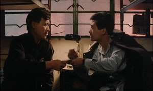 Chow Yun-Fat plays the undercover cop who wants out and Danny Lee plays the bad guy who is actually quite a good egg after all. The bad guy wants to steal jewellery and the undercover cop is busy infiltrating the gang and gaining their trust. The undercover cop story has always been a popular feature in Hong Kong actions movies, with the likes of Hard Boiled, Infernal Affairs and Cop on a Mission all fine examples. I would like to write more on the subtler elements of the plot, such as Chow's rocky romance, and the way in which Lam portrays his characters (both good and bad) as victims of their circumstances, but I'm guessing that you are impatiently reading this waiting for the Tarantino comments. |