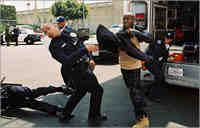 The only element that could raise any hope would be Corey Yuen once again working with Jet as action choreographer and hopefully improving on his previous showings. The only time Jet and Corey seem to have produced any level of success was in Kiss of the Dragon, and I largely suspect this was due to the absence of an interfering and inexperienced US production team. Sadly, the action in this movie has a lot more in common with Romeo Must Die and is another wasted opportunity for Jet to show his true fighting potential. This is never helped by Jet's character being reduced to a paper-thin 'quiet but deadly' Chinaman who is only one level up from a mute. DMX plays his role capably, but once again I suspect this is because his role was an entirely characterless 'bad-ass dog'. I'm not sure I managed even the slightest amount of interest or empathy with a single character and there must have been some competition going on behind the camera to see who could be the most wooden, uninspiring, formulaic caricature on set. I think the award would probably go to Mark Dacascos, but to be fair he only had a handful of lines to try and be anything but a 'bad-guy who wears shades'. I have absolutely no problem with directors using camera tricks / CGI / fast-editing / under-cranking / wires to make people such as Keanu Reeves, Laurence Fishburne, Steven Seagal, Ben Affleck look like martial arts superstars, they clearly need such enhancements. But is it really necessary for one of the most talented performers of his generation, namely Jet Li? I would point out films such as Fist of Legend / Once Upon a Time in China etc as reference points for these claims, but most US directors at best have seen the butchered versions that are currently being churned out by Dimension. I had extremely high hopes for an encounter between Jet and Dacascos, as both are talented on screen performers, but by the time we had reached the final fight I already knew I was going to be hugely disappointed. Every single fight during this movie is entirely forgettable including the fight in the ultimate warrior ring (hugely inferior to the tonfa sequence in Kiss the Dragon) and the only interesting action is provided by a quad-bike chase across downtown LA. Sadly, this is also over-edited but this does not fully mask some quite original Bond-esque moments. |