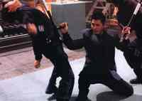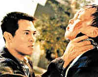 FILM: For the action in this movie there are only about three main sequences of note. The first is in a restaurant and is largely gun fighting which is not done too badly but apart from a few flash moves from Jet, is largely forgettable. Next is a truck scene where Jet and Guang fight in an alley and Jet is nearly run over a truck, but he isn't. There is little else worth saying about it. The final climax (if that's the right word), involves Jet, Anita and Tze taking on a shipload of baddies which is where Ken Lo gets a couple of minutes of action alongside Guang and Ngai Sing. The one moment of entertainment from this film occurs with the double tonfa scene. This starts off really well but ends up with people on wires flying about after being hit by Jet which is too exaggerated to be entertaining. It is not in the same league of Tonfa fighting as Spiritual Kung Fu, Shaolin Challenges Ninja or Born Invincible. Then Jet and kid start fighting with ropes which just looks a bit silly and the coup de gras involves Jet tying the rope round his son and using him as a human lasso / boomerang. This really, really sucks and is possibly the low point of Corey Yuen's career?