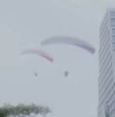 I shall not spend too long on this movie's plot, mainly because it could either be described as sophisticated, or as scattered and over-complicated. Basically, there is (as for the police force in Purple Storm) a 'very good looking' Secret Project team bought by the CIA to develop super-fighters through a 7 day intensive subliminal and hypnotic programme, i.e. Koo, Tango and Blue. Unfortunately Blue is kidnapped and Tango and Koo decide to become super-fighters to rescue her and prevent the bad guys from using the stolen hypnotic technology to create riots in Asia through subliminal TV signals during the 1998 World Cup! I personally think that this film in its own right was quite an exciting plot, but... then Koo goes crazy, Tango is re-programmed to kill Koo and there's a few more developments and twists I won't spoil. It can be suggested that this film tries one subplot too many and is over-concerned the audience will not get the excitement they crave. Perhaps a bit more faith by Jingle Ma in the lead roles would have allowed more character development as opposed to some cheapish frills (see the Paraglider chase through Hong Kong - pictured left), but having said that, it is certainly not a predictable plot. |